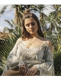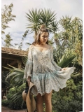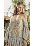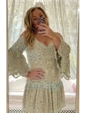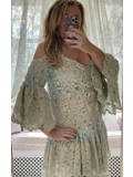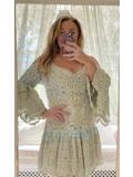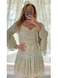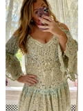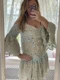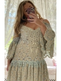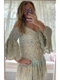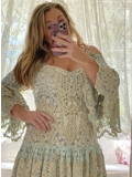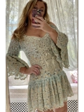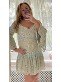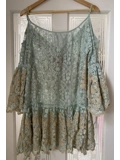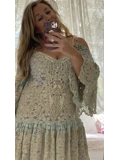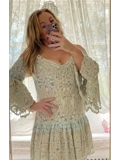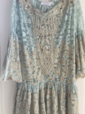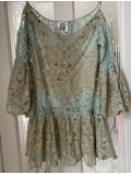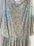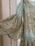 The most beautiful duck egg green lace with heavy embroidery in stone.