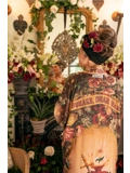 This beautiful, dramatic print was created using archival artwork from the 1800's - including floral wreaths & fountains from Victorian lithographs, and an 1878 hand-coloured Sacred Heart illustration.