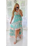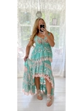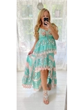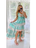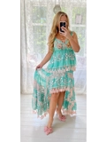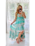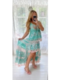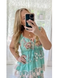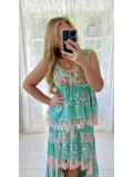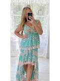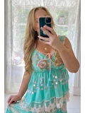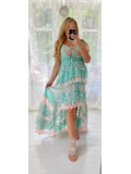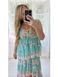 Embellished with gorgeous embroidery, foil mirror and lace trim.