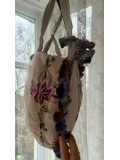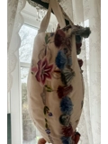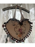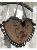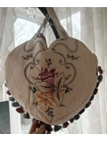 Heart shaped tote bag is made from beautiful floral and embroidered fabric and finished off with gorgeous tassel trim.