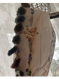 One of a kind, made from a vintage table cloth and trim.