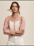 Long puff sleeves with smocked cuffs create a voluminous, flattering silhouette.