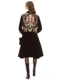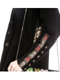 Floral jacquard upper back, jacquard trim sweater knit cuffs.