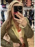 Thick French terry jersey button-down coat, with luxurious velvet collar/lapel.