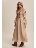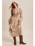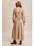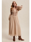 Flattering square neckline framed by vintage-inspired embroidery on the bodice.