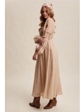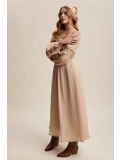 Flowing A-line maxi skirt with soft gathers and full movement.