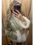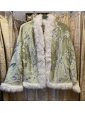 Crafted from soft luxurious velvet and finished with a delicate faux fur trim, this statement piece features intricate sequin embroidery that shimmers beautifully in the light. Effortlessly chic yet wonderfully warm - perfect for elevating both day and evening looks.